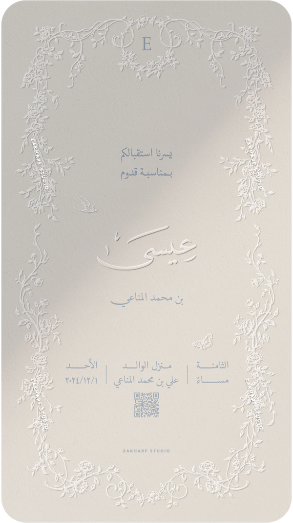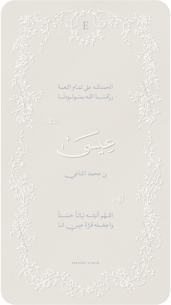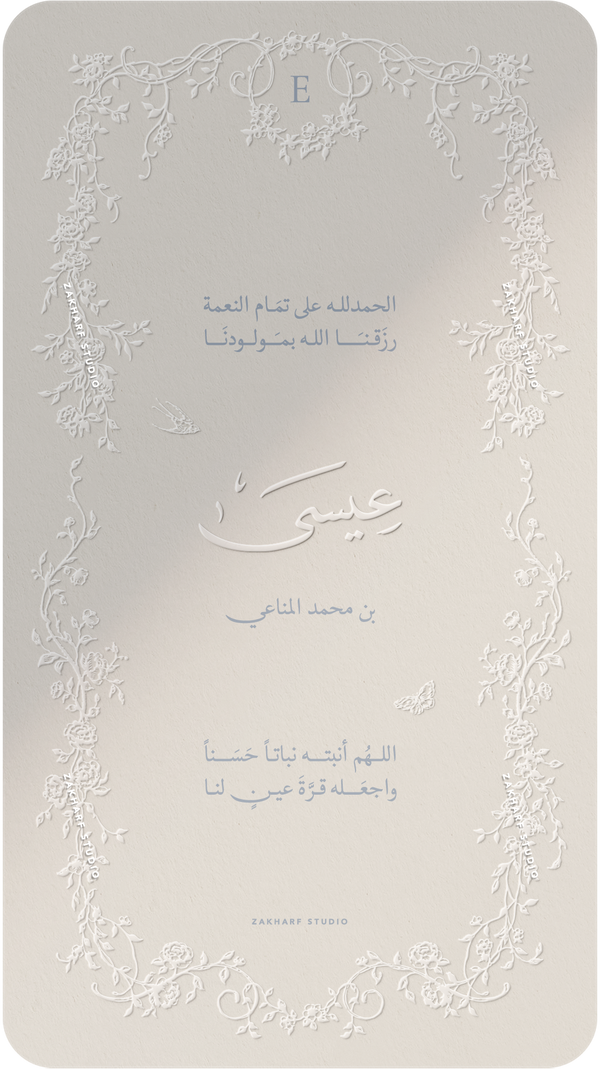 ملاحظة: يختلف التصميم حسب اسم المولود.